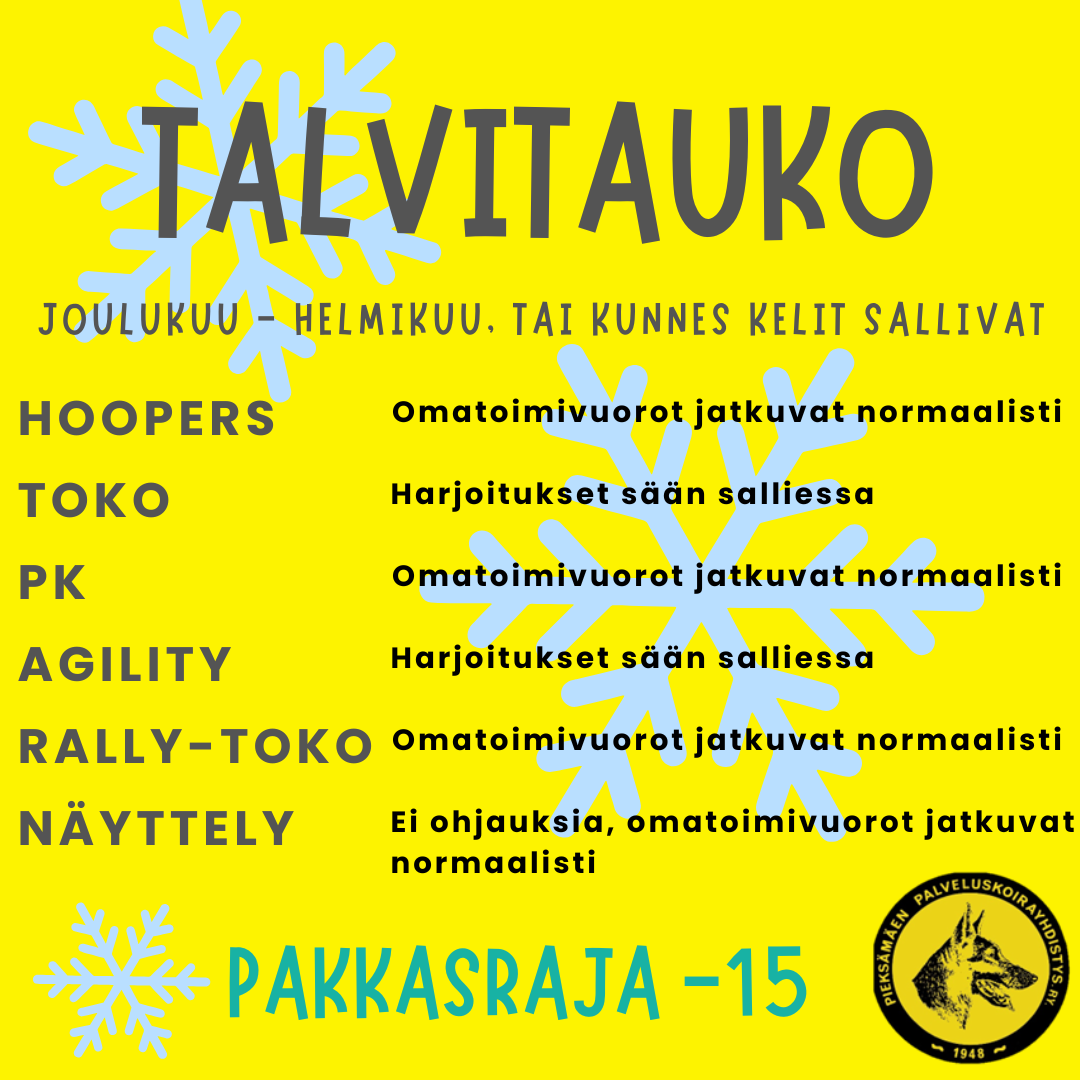 - Halli kylmenee talvella, ja tämän vuoksi ohjatut harjoituken vähenevät, alla kuva talvitauoista